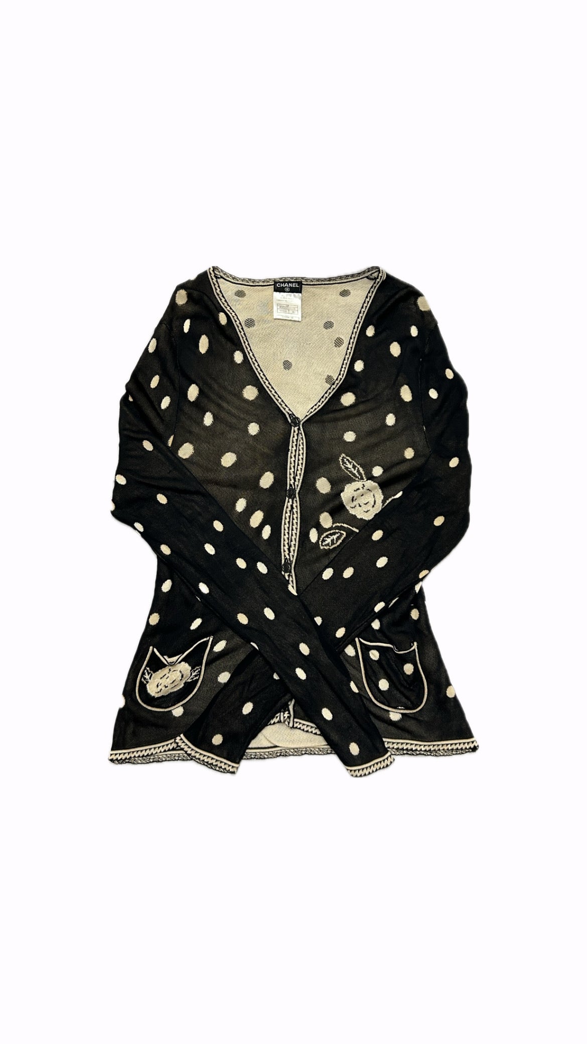 CHANNEL COCO button 02P Rayon Cardigan 46 Black
